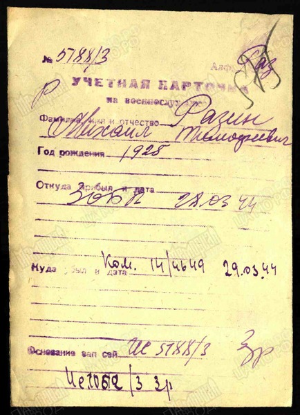 Именная тема, посвящена воину «Разин Михаил Тимофеевич 1925» - земляку с моей (дед Митяй) малой родины (Званы, Миницкое, Василёво /воинов из деревень с названиями Великий Двор и Новинка вычленить в поиске без ошибок затруднительно, из-за наличия топонимов с такими названиями, практически во всех районах…/)