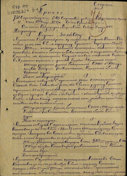 Дата подвига: 25.06.1944-27.06.1944