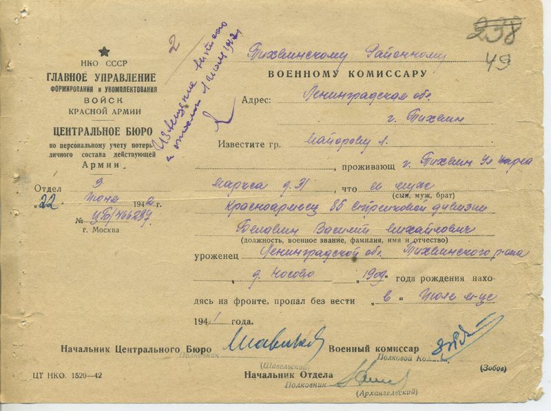 Файл: «Тихвин_Архив_РВК_Похоронки_Белавин.В.М»