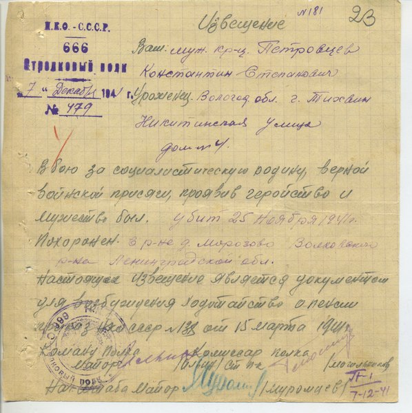 Файл: «Тихвин_Архив_РВК_Похоронки_Петровцев.К.С»