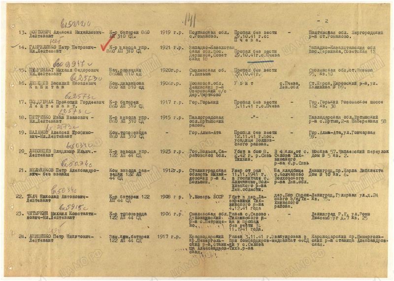 Через ОБД ID: 50813593; Донесения о безвозвратных потерях от 28.04.1942; источник: ГУНАРТ КА; стр. 9/20