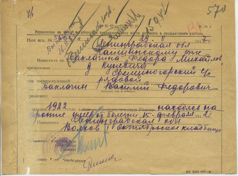 Файл: «Тихвин_Архив_РВК_Похоронки_Баклагин.В.Ф»