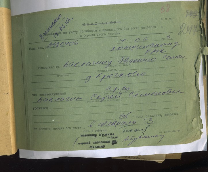Файл: «Тихвин_Архив_РВК_Похоронки_Баклагин.С.С_1»
