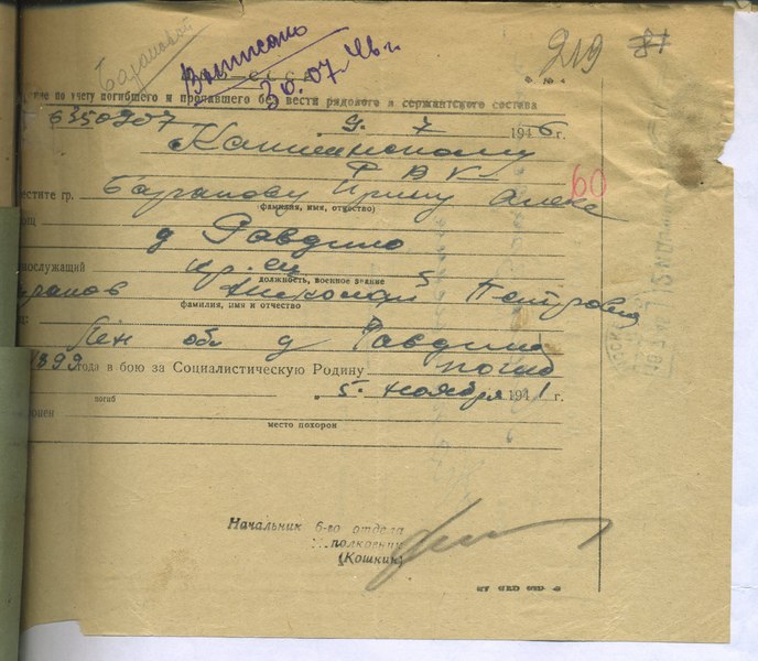 Файл: «Тихвин_Архив_РВК_Похоронки_Баранов.Н.П_1»
