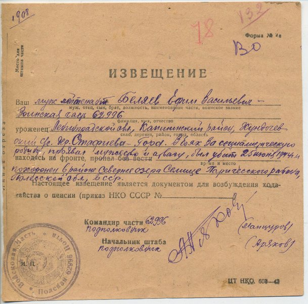Файл: «Тихвин_Архив_РВК_Похоронки_Беляев.Е.В»