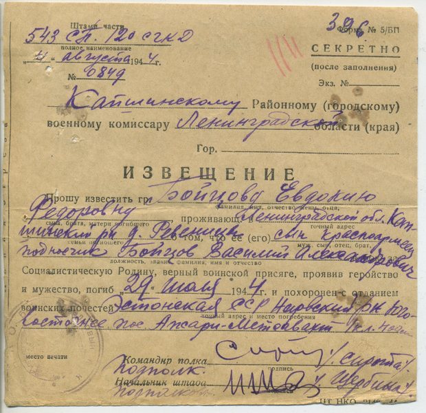 Файл: «Тихвин_Архив_РВК_Похоронки_Бойцов.В.А_2»