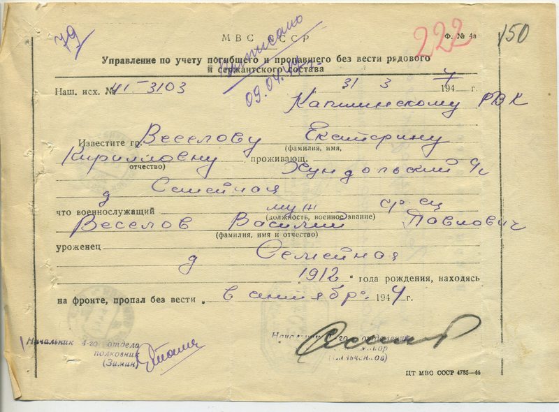Файл: «Тихвин_Архив_РВК_Похоронки_Веселов.В.П_1»