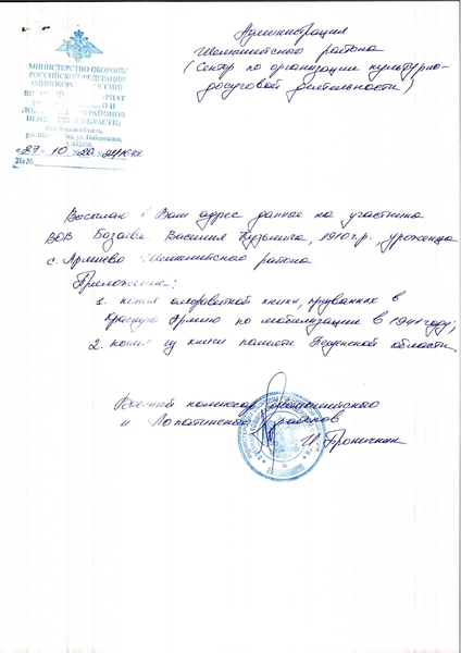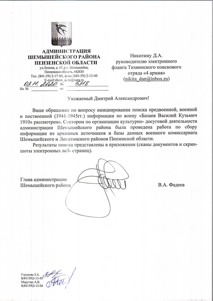 Что совсем не означает, что не надо продолжать искать в онлайн-архивах новые документы, как и запрашивать уже напрямую от имени родственников такого рода документы по Базаеву В. К. в архивах Шемышейского РВК Пензенской области и Центральном Архиве Министерства обороны Российской Федерации.