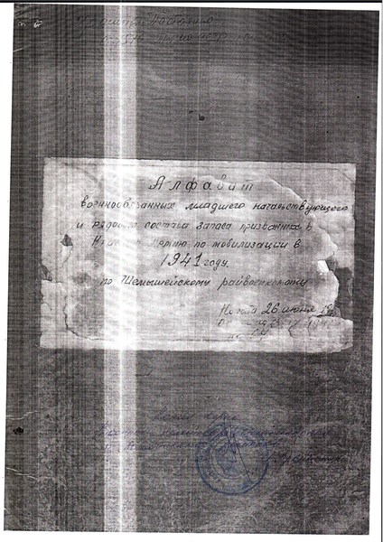 В январе месяце 1942 года при проведении боевых операций на колпинском участке фронта Ленинградской области прямым попаданием вражеского снаряда в землянку была уничтожена также вся документация по учету личного состава, из-за чего и не было возможности своевременно выслать именной список на безвозвратные потери на рядовой и сержантский состав, поименованный в прилагаемых списках.