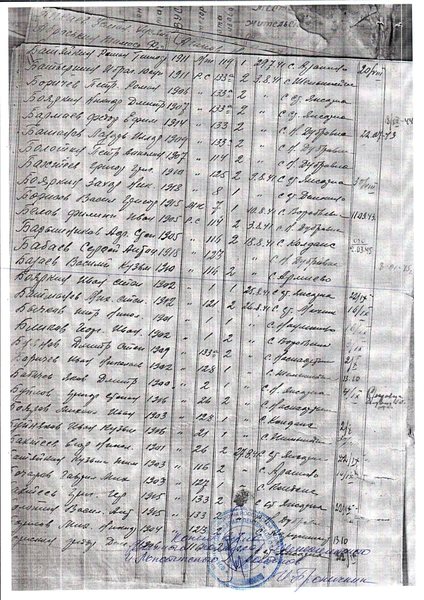 В сухом остатке можно отметить только (ТОЛЬКО) ВУС (военно-учётную специальность) воина «Базаев Василий Кузьмич 1910», прописанную в именном списке на команду = 114, что по справочнику ВУС, классифицируется, как «металлисты (повтор в документе с ВУС-113»