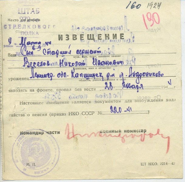 Файл: «Тихвин_Архив_РВК_Похоронки_Веселов.Н.И_02»