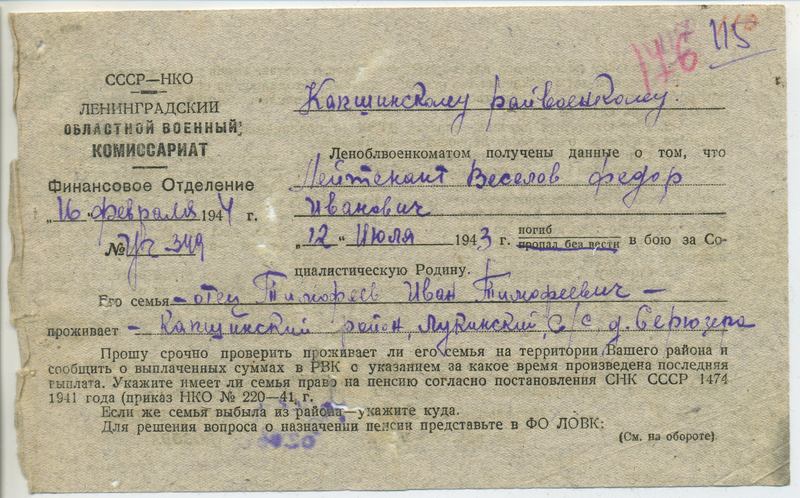 Файл: «Тихвин_Архив_РВК_Похоронки_Веселов.Ф.И»