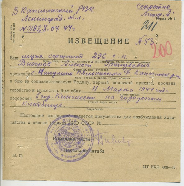Файл: «Тихвин_Архив_РВК_Похоронки_Вихров.А.Г»
