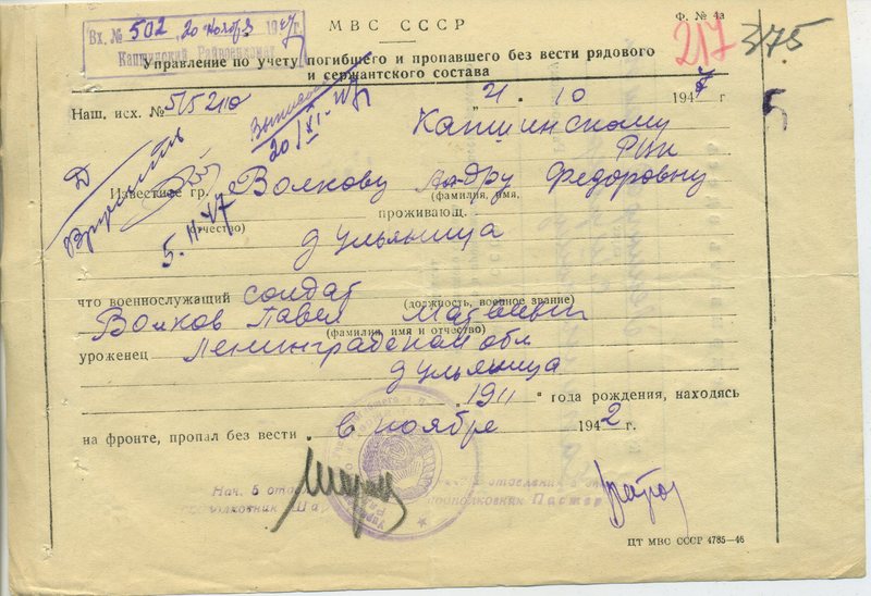 Файл: «Тихвин_Архив_РВК_Похоронки_Волков.П.М_2»