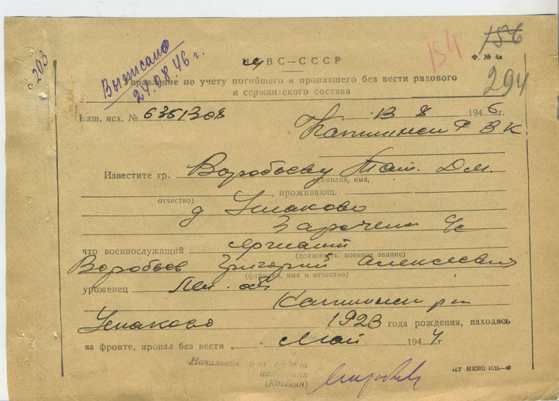 Файл: «Тихвин_Архив_РВК_Похоронки_Воробьев.Г.А_2»