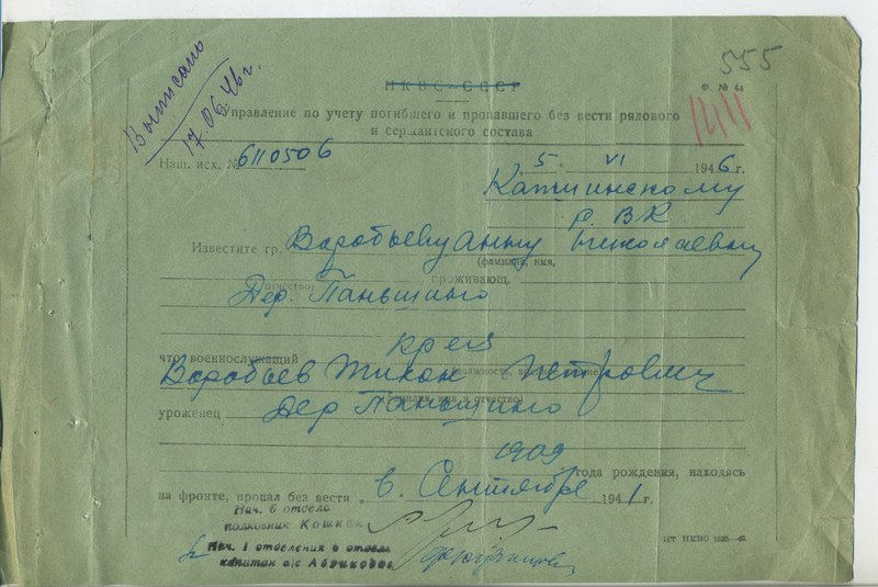 Файл: «Тихвин_Архив_РВК_Похоронки_Воробьев.Т.П_1»