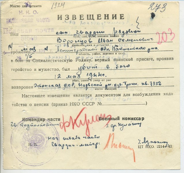 Файл: «Тихвин_Архив_РВК_Похоронки_Воронцов.И.С_2»