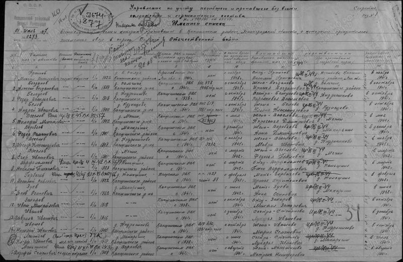 ОБД ID: 61180935; Подворовой от 18.07.1947; источник: Капшинский РВК, Лен. обл.