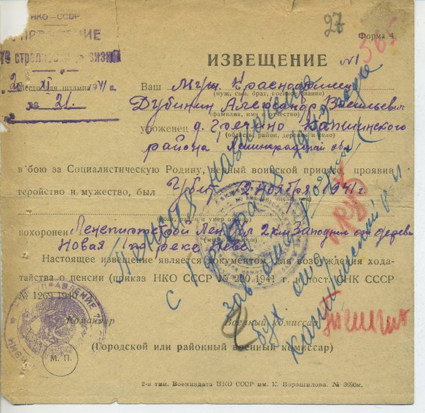 Файл: «Тихвин_Архив_РВК_Похоронки_Дубинин.А.В_1»