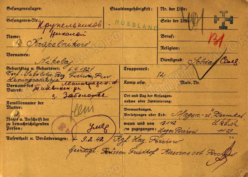 Крупельников Николай 06.04.1921 Заболотье рядовой 82 СП, 33 СД плен Dulag 100 (Порхов погиб 09.02.1942 67745561 301009326 1153493497 ВПП нет подвиг нет DOKST нет
