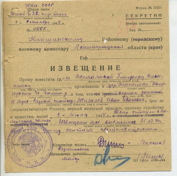 Файл: «Тихвин_Архив_РВК_Похоронки_Жигалов.И.И_1»