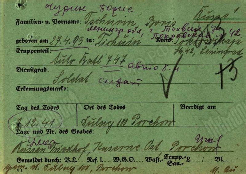 Чурин Борис Николаевич (Чурис, 1894 27.04.1893 1893 Тихвин рядовой 747 автобат плен Dulag 100 (Порхов погиб 07.12.1941 301048522 67589919 ВПП 1988606922 ВПП 1988469368 подвиг нет DOKST 620001 DOKST 793267