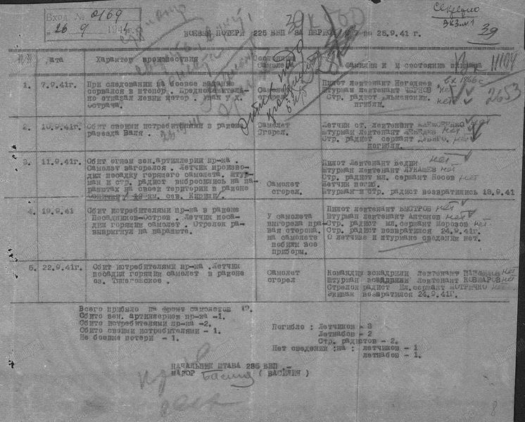 ОБД ID: 9556944; Донесения о безвозвратных потерях от 26.09.1941; источник: 225 ББП; стр. 1/1