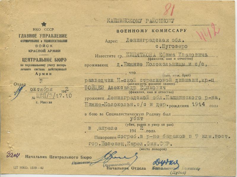 Файл: «Тихвин_Архив_РВК_Похоронки_Бойцев.А.Е»