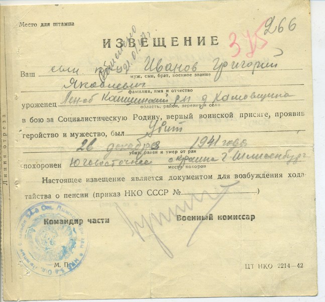Файл: «Тихвин_Архив_РВК_Похоронки_Иванов.Г.Я_2»