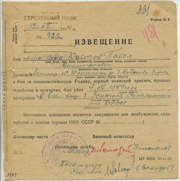 Файл: «Тихвин_Архив_РВК_Похоронки_Клочев.П.Д_1»