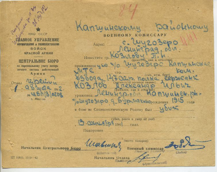 Файл: «Тихвин_Архив_РВК_Похоронки_Козлов.А.И»