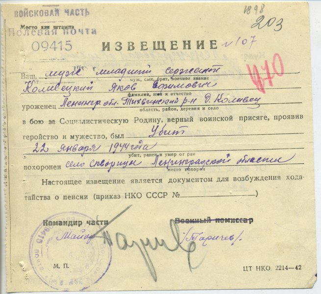 Файл: «Тихвин_Архив_РВК_Похоронки_Коливецкий.Я.Е_1»