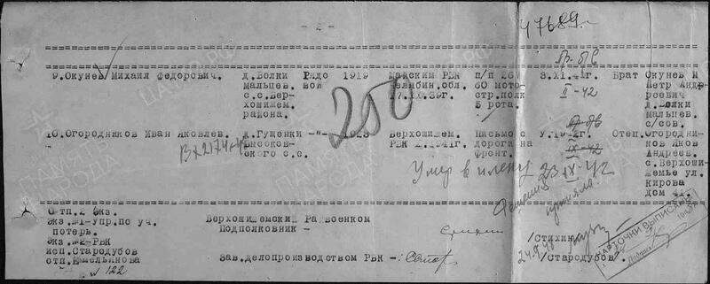 toromalina создал(-а) тему: Окунев Михаил Федорович 1919