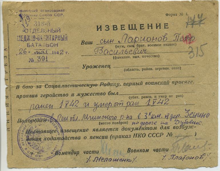 Файл: «Тихвин_Архив_РВК_Похоронки_Ларионов.П.В_2»
