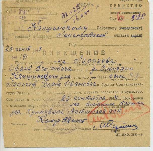 Файл: «Тихвин_Архив_РВК_Похоронки_Ларичев.Б.И»