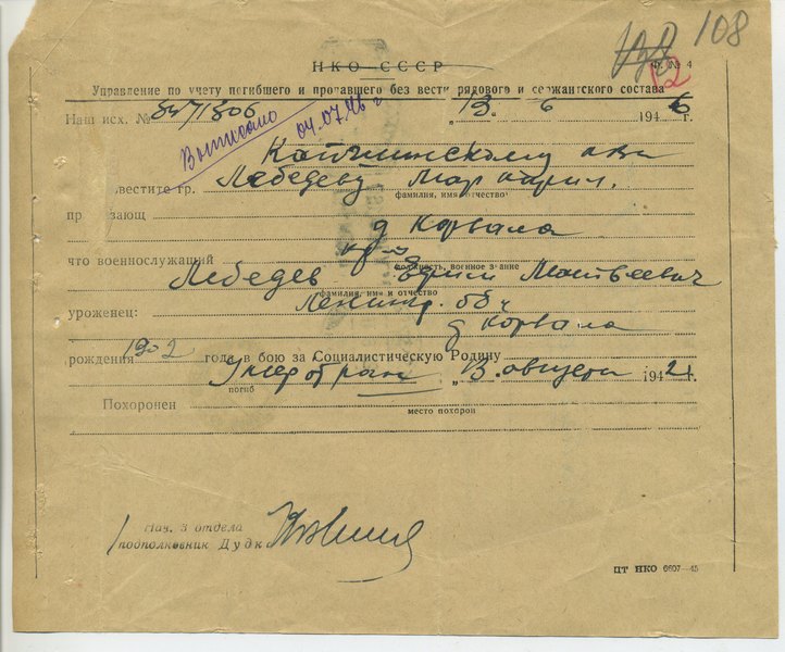 Файл: «Тихвин_Архив_РВК_Похоронки_Лебедев.Е.М_2»