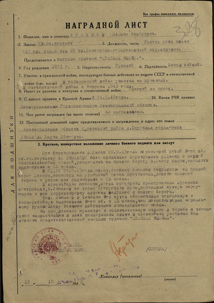 За проявленное мужество и исключительную отвагу в борьбе с немецкими захватчиками в деле поддержания связи в сложнейших условиях боя, достоин правительственной награды – орденом «Красная Звезда»