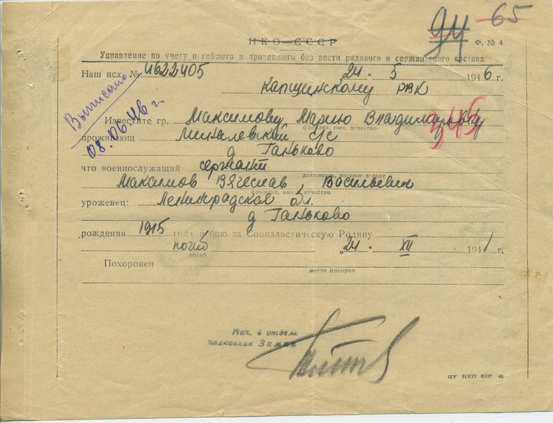 Файл: «Тихвин_Архив_РВК_Похоронки_Максимов.В.М_2»