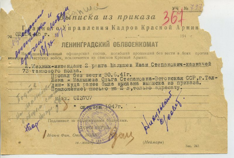 Файл: «Тихвин_Архив_РВК_Похоронки_Малышев.И.Ст»