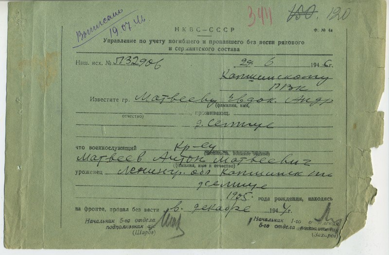 Файл: «Тихвин_Архив_РВК_Похоронки_Матвеев.А.М_1»