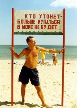 Человек, услышав голоса, скинул бурку, сбросил папаху, оказался в весьма живописном пляжном наряде.