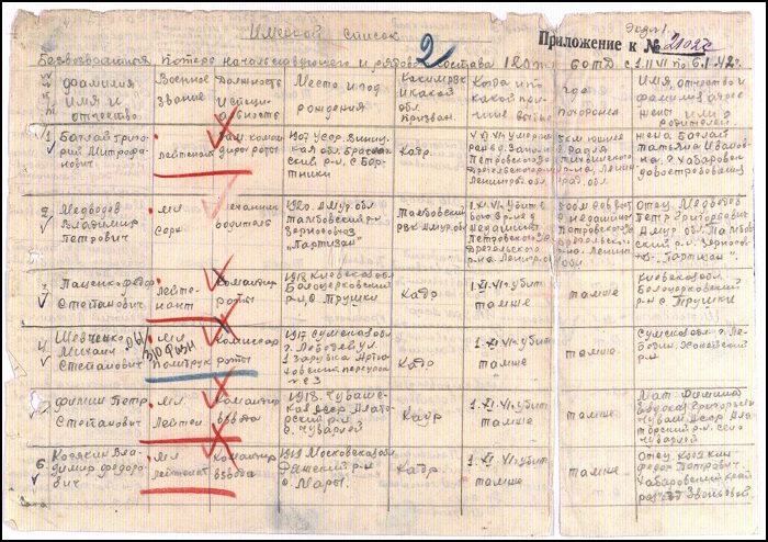 Точный ответ на этот вопрос я, пожалуй, не получу уже никогда. Но он меня в данном случае и не сильно интересует, ведь я собираюсь рассказывать о погибших воинах 121 танкового полка. Причем погибших и "пропавших без вести", указанных поименно в официальном списке безвозвратных потерь личного состава 60 танковой дивизии. Штабные могли скорее кого-то просто не указать (забыть, например, или же не указывать попавших в плен), но никак не включили бы в такой список бойцов живых и продолжавших воевать...