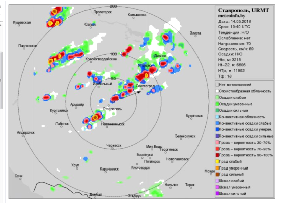 Грош цена всем воздействиям, если в крае не будет современного радиолокатора, современных технологий. Нынешний ставропольский локатор морально устарел. Работающие там специалисты-суперпрофессионалы, которые пытаются качественно отследить развитие процесса. Стоимость локатора - примерно 60 млн. рублей. Однако, в настоящий момент, средств на эти цели в бюджете края нет. Зато... есть предложение...