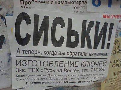 Начнем, пожалуй, с объявлений из серии "В мире животных". Много тут что пишется, объявляется и развешивается. Такое, например: