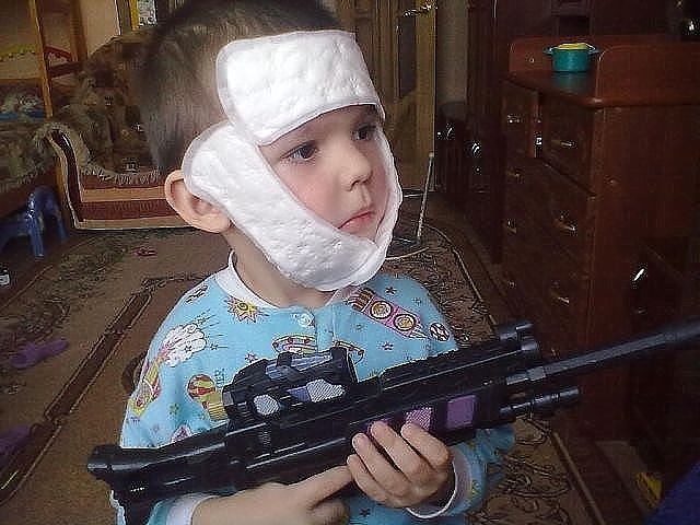 Мама чуть со стула не упала, когда пришел ТАКОЙ раненый солдат (подпись под фотографией на личной странице первоисточника)